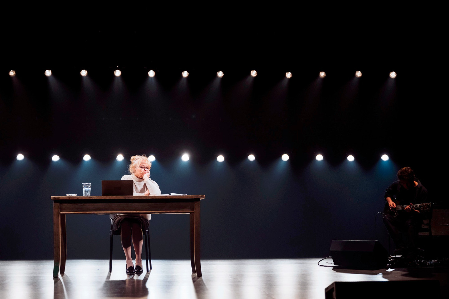 Monique Spaziani brille dans cette lecture sentie et émouvante. Une table, une chaise et un ordinateur lui servent d’accessoires. Quoique son personnage semble fatigué dès le début, la comédienne déambule la plupart du temps autour dudit meuble. Dans le coin droit de la scène, quelque peu dans l’ombre, l’excellent guitariste Bernard Falaise accompagne le texte de façon imaginative et subtile.