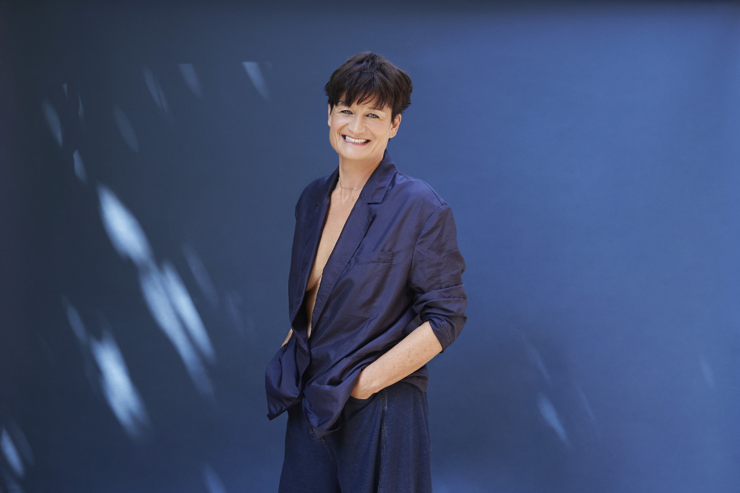 C’est par un après-midi caniculaire de juillet que se tient la séance photo du présent numéro de Jeu. Angela Konrad nous accueille, enthousiaste, à l’Usine C, au cœur d’un chantier d’aménagement urbain. Dans son bureau, dans les loges, elle se fait volubile, attentionnée, très vite son humour et sa détermination sont manifestes. Le passage à la coiffure et au maquillage est l’occasion d’échanges spontanés. Elle nous montre une photo d’elle, tout juste sortie de l’adolescence, la tête hirsute, c’est ainsi qu’elle aime ses cheveux… Konrad sait ce qu’elle veut, mais ça ne l’empêche pas de tout essayer pour obtenir, souvent, encore mieux que ce qu’elle envisageait. Son ouverture, sa générosité transparaissent, ce jour-là, devant la caméra, où l’ancienne comédienne se fait mannequin.